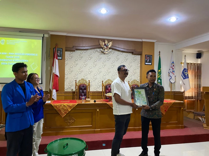 Sebagai simbolis berakhirnya kegiatan, acara ditutup dengan prosesi pencabutan name tag mahasiswa KKN. Pada kesempatan tersebut, mahasiswa KKN Universitas Warmadewa menyerahkan piagam penghargaan sebagai kenang-kenangan kepada Pemerintah Desa Carangsari. Selain itu, mereka juga menyerahkan tong sampah sebagai bagian dari program kerja di bidang kebersihan desa.