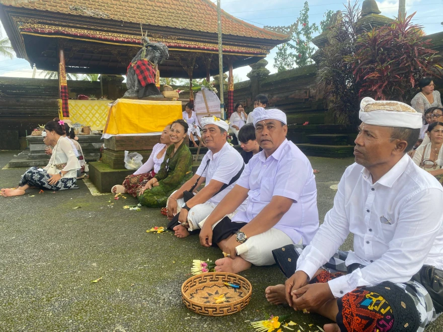 Upacara berlangsung dengan khidmat sejak pagi hari, diawali dengan rangkaian persembahyangan dan ritual pembersihan secara niskala untuk memohon keselamatan dan keharmonisan alam. Keluarga Puri I Gusti Ngurah Rai Carangsari hadir langsung memimpin prosesi, sebagai bentuk penghormatan kepada leluhur sekaligus menjaga kesinambungan nilai-nilai perjuangan.