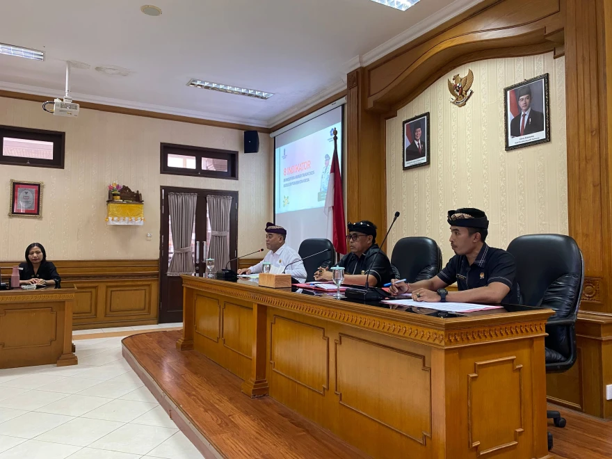 Perbekel Carangsari, I Made Sudana bersama jajaran perangkat desa menghadiri kegiatan Presentasi Paparan 8 Indikator Penilaian Mangupura Award Tahun 2025 yang berlangsung di Ruang Rapat Badan Riset dan Inovasi Daerah (Brida) Kabupaten Badung, Kamis (11/09).