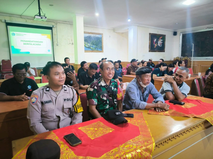 Acara dipimpin langsung oleh Perbekel Carangsari, I Made Sudana, serta dihadiri oleh Plt Camat Petang, Perangkat Desa, Badan Permusyawaratan Desa (BPD), Lembaga Desa, Tokoh Masyarakat, hingga perwakilan kelompok masyarakat.